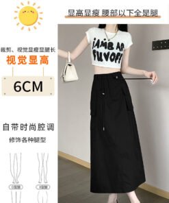 Vapetix ✪S Recommended for 85-95 lbs-✪XL Recommended for 115-130 lbs Vintage American-style split work half skirt for women, summer, mid-length, high-waisted drawstring