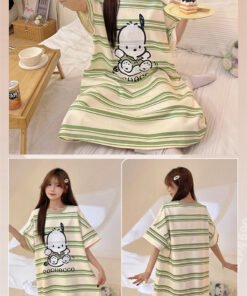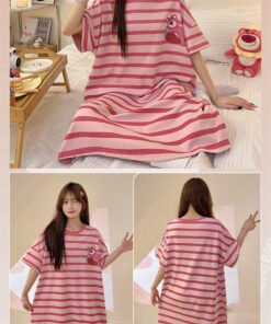 Vapetix 2 yards (80-120 pounds)-XXL Women’s Summer Sleepwear Loose Plus Size Short Sleeve Cartoon Cute Teen Student Thin Pajamas Home C