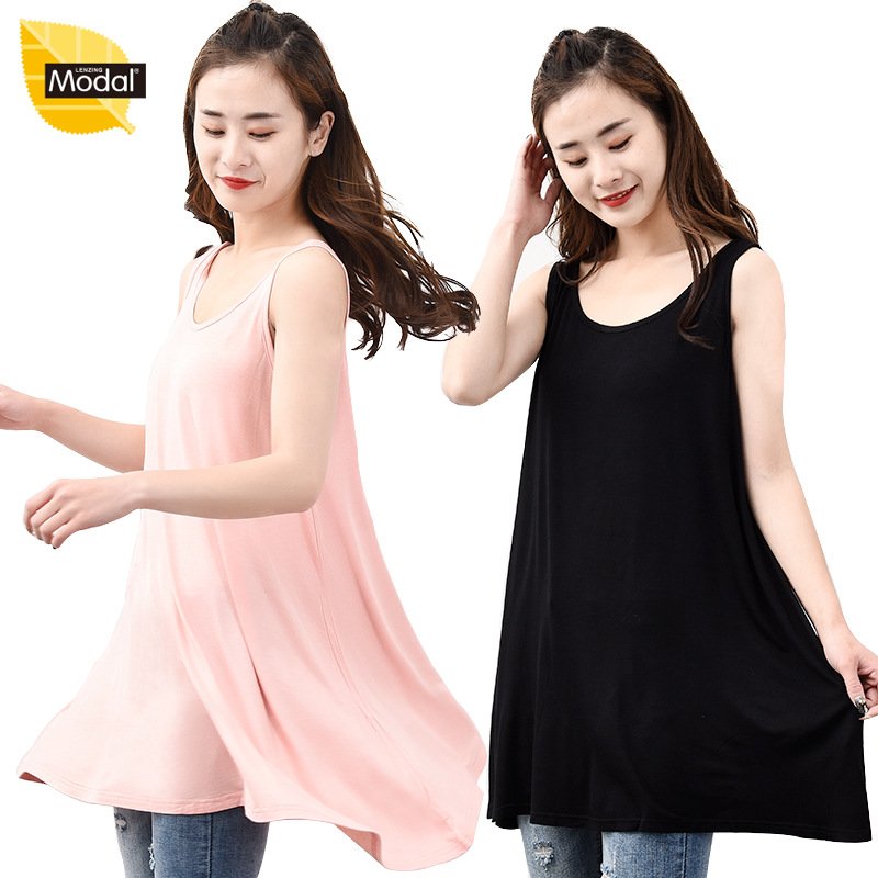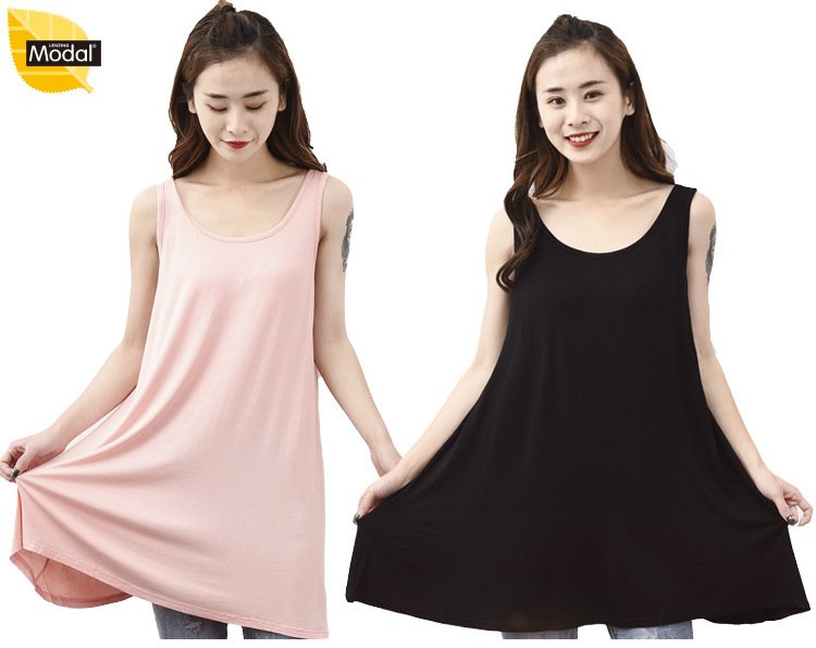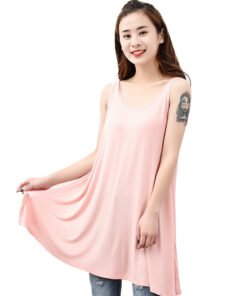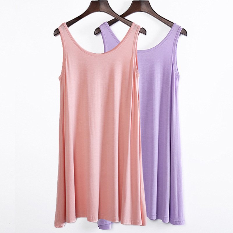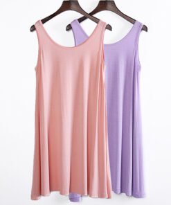 Vapetix 3XL-2XL Women’s Summer Modal Thin High-Elasticity Plus Size U-Neck Backless Tank Dress Casual Medium-Long L