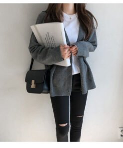 Vapetix Average size-Average size Korean women’s loose languid core spun yarn sweater cardigan women’s Harajuku Short Knitwear jacket