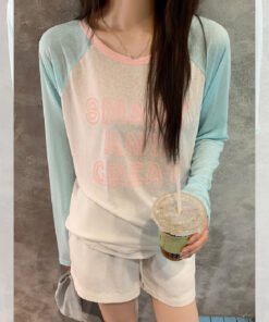 Vapetix Free Size-Free Size Actual Color Collage Letter Print Cool Sensation Long-Sleeve Women’s Summer Loose Thin Casual Small