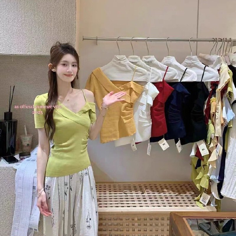 Vapetix Free Size-Free Size ASOFFICIAL New 2025 Korean Version Fashion Sweet and Spicy Single Shoulder Design Pleated Waist-Bin
