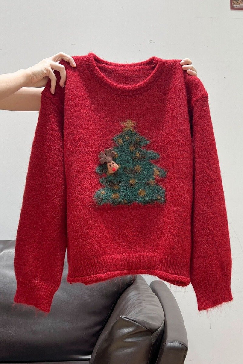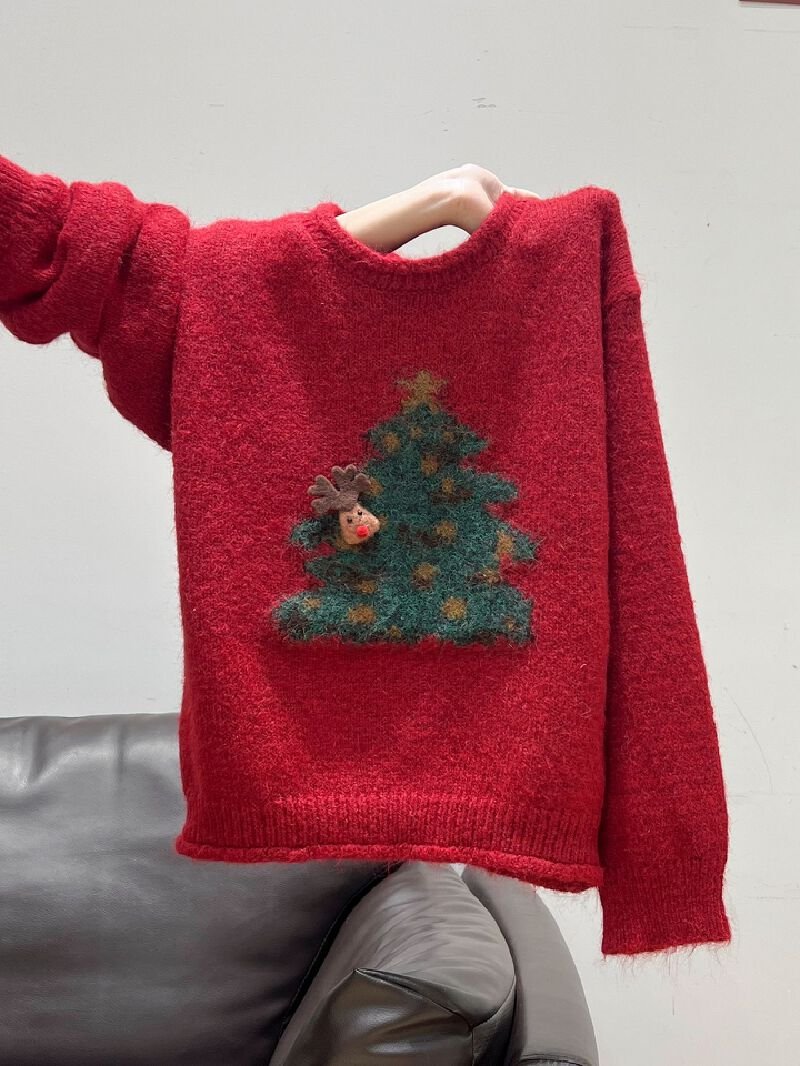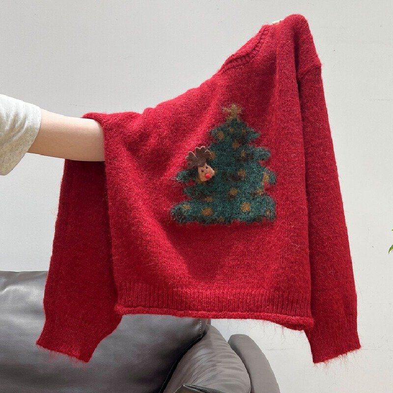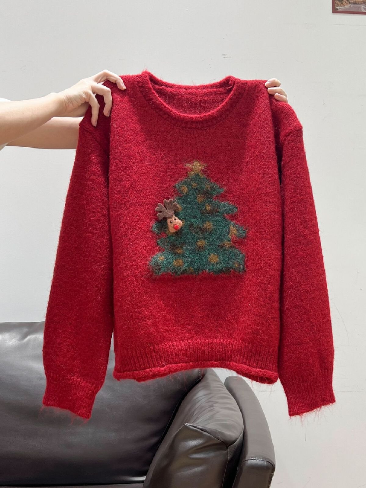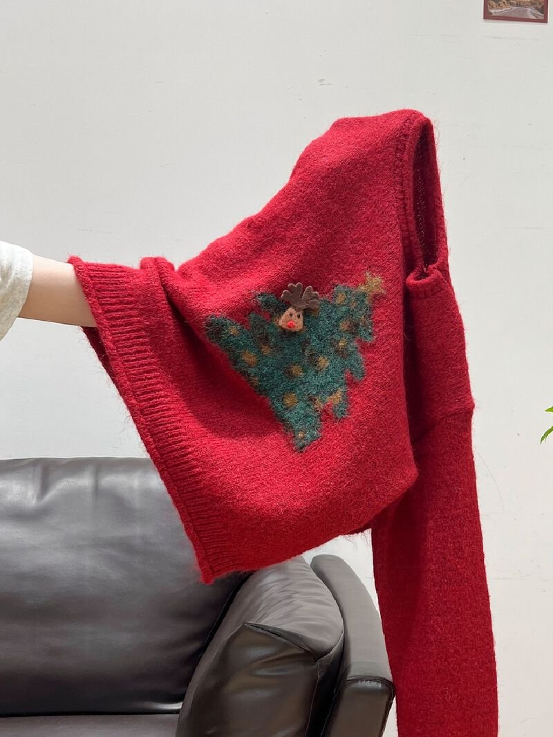 Vapetix Free Size-Free Size Christmas Outfit Red Knit Sweater for Women 2025 New Arrival Petite Size Super Cute Early Winter La