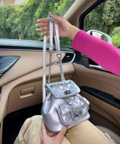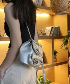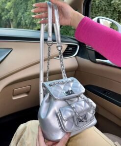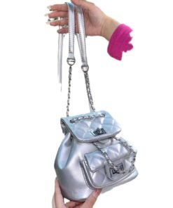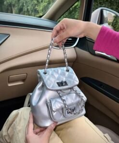 Vapetix Free Size-Free Size Diamond Grid Embroidered Double Shoulder Bag for Women, Summer Fashion Trendy Chain Small Backpack,