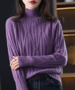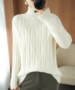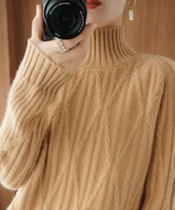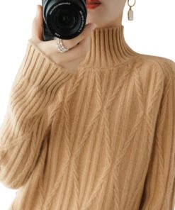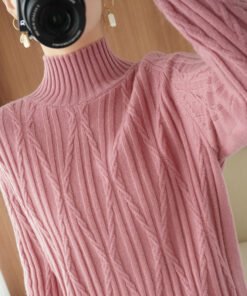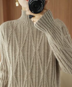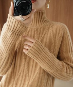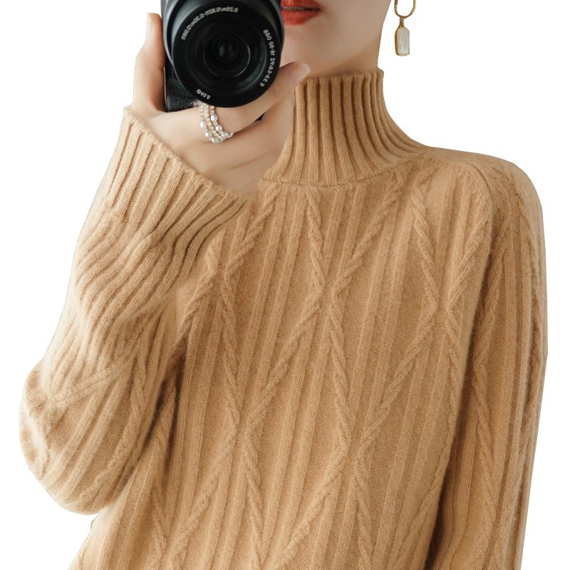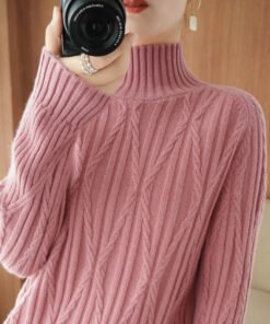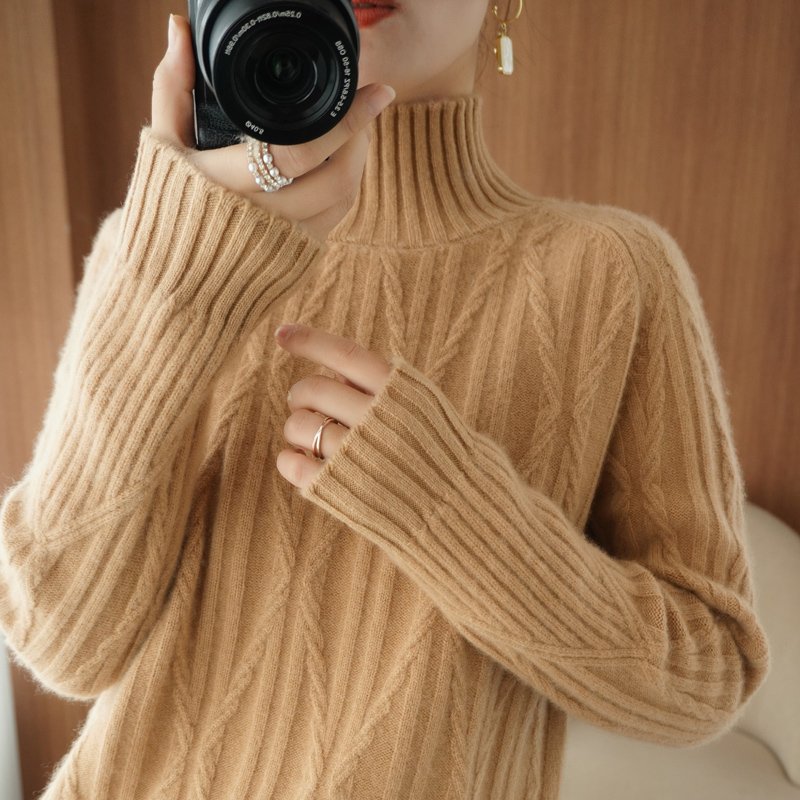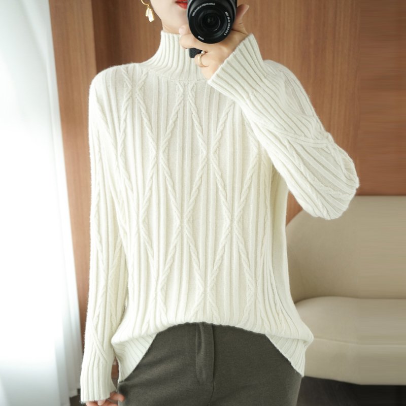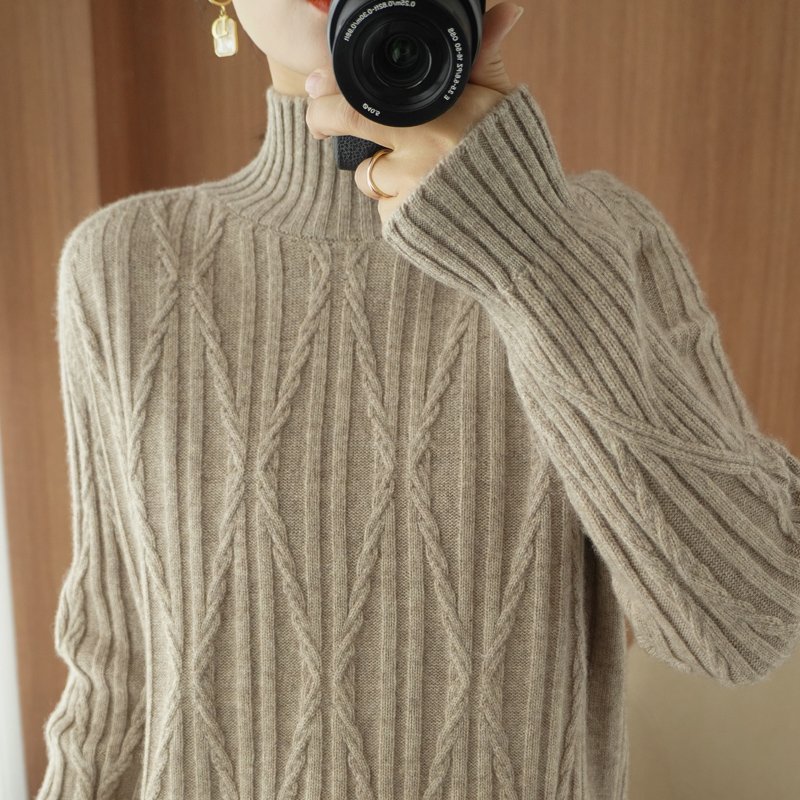 Vapetix Free Size-Free Size Half-high-neck cashmere base layer shirt, 2025 autumn/winter new arrival—women’s cable-knit sweater