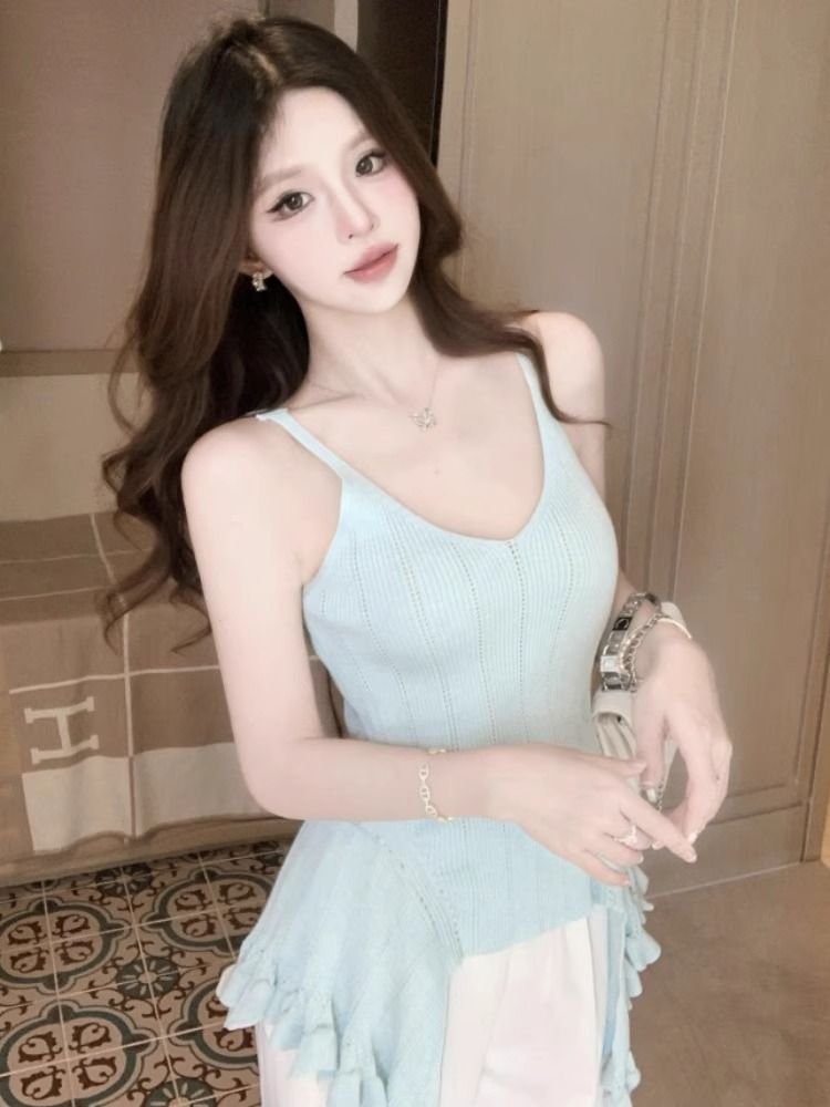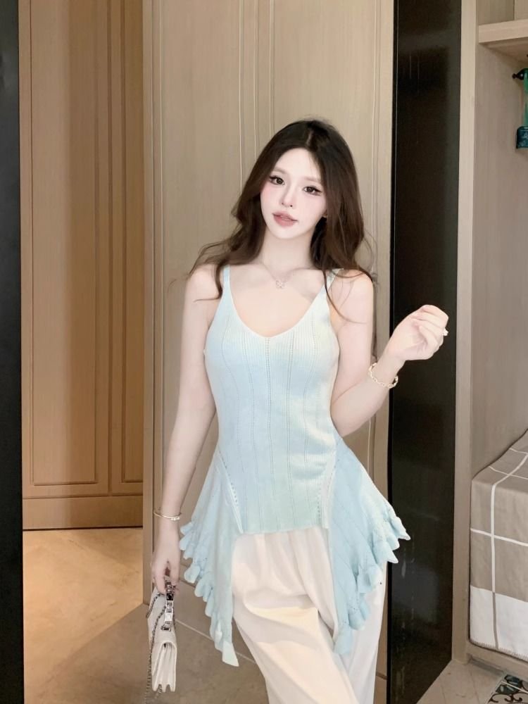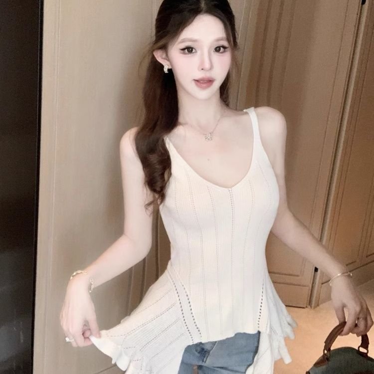 Vapetix Free Size-Free Size Irregular Ruffled Knitted Strapless Vest Women’s Summer 2025 New Design Sense Niche Slimming Slim T