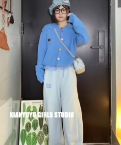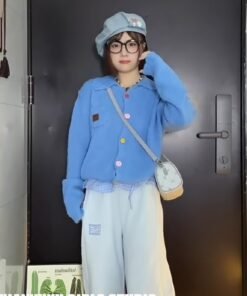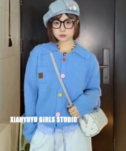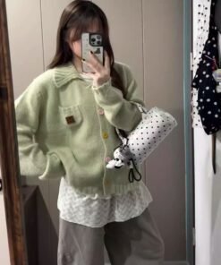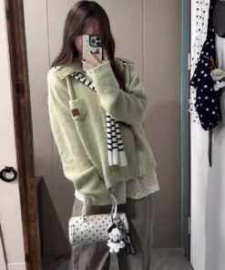 Vapetix Free Size-Free Size Korean-style early autumn atmosphere wear green lapel button knitted cardigan women’s loose outerwe