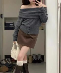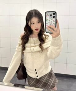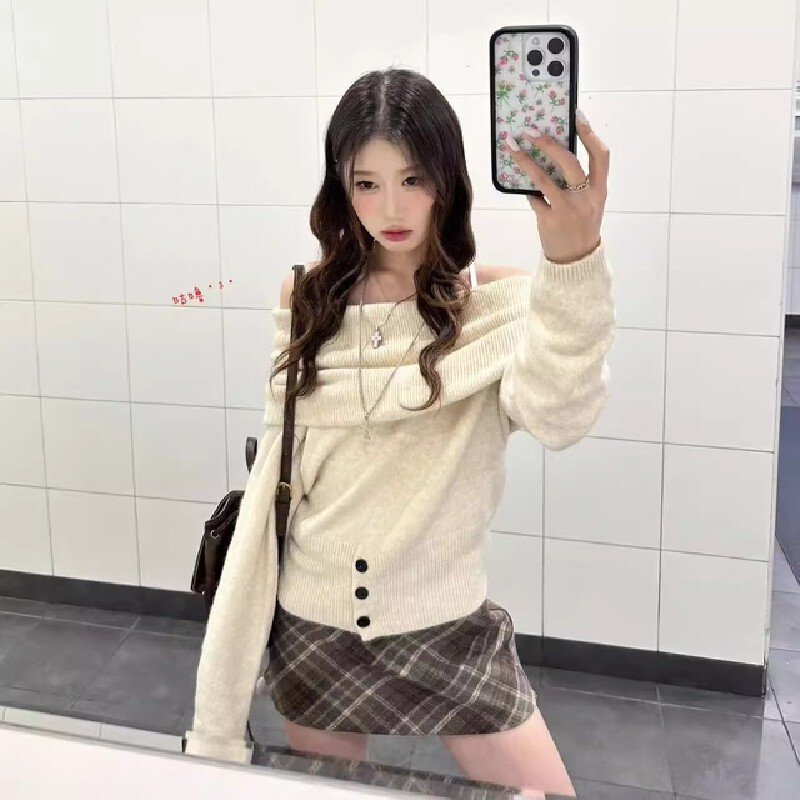 Vapetix Free Size-Free Size One-Character-Leading Sweater 2025 Autumn/Winter New Inclusive French Design Soft and Comfortable H