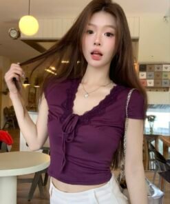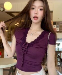 Schreibe die erste Bewertung für „Vapetix Free Size-Free Size Photo-shoot New Lace Edge Strap Design Pure Desire Style Slimming Hot Chick T-shirt Short-sleeve To“ Antworten abbrechen
