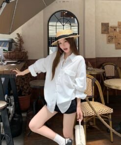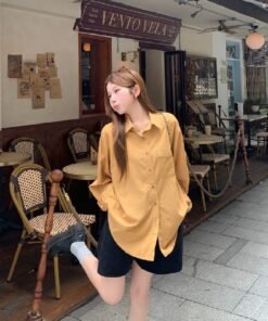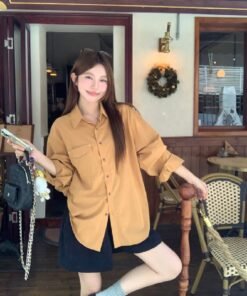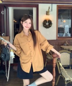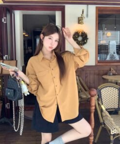 Vapetix Free Size-Free Size Photographed Korean-style retro relaxed fit thin women’s autumn casual versatile long-sleeved top