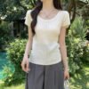 Vapetix Free Size-Free Size Photographed Summer Korean-style temperament polo collar button retro color-block striped knit top