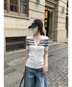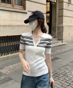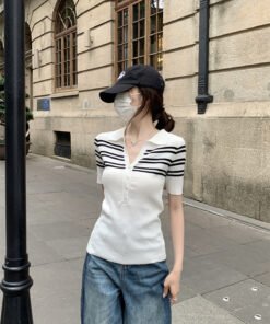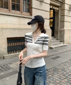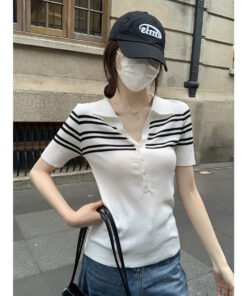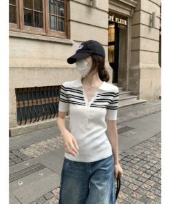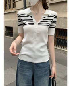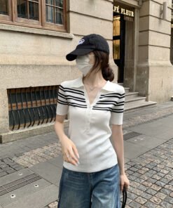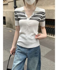 Schreibe die erste Bewertung für „Vapetix Free Size-Free Size Photographed Summer Korean-style temperament polo collar button retro color-block striped knit top“ Antworten abbrechen