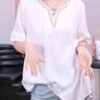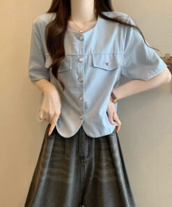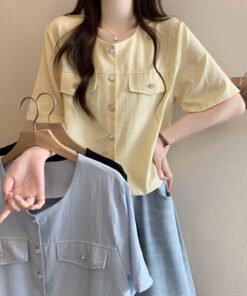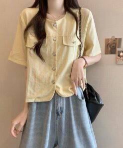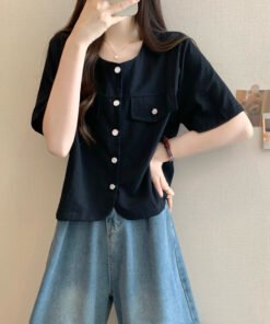 Vapetix Free Size-Free Size Shooted New Korean Style Design Sensibility Short Sleeve Square Collar Blouse Cardigan