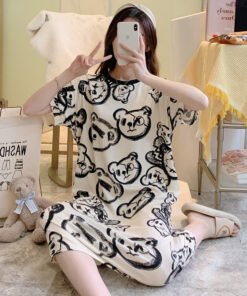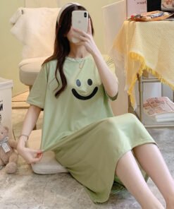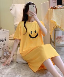 Vapetix Free Size-Free Size Sleepwear for women, summer thin short-sleeved cartoon cute smiling dress, loose home clothes, lazy
