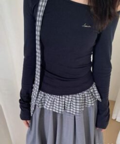 Schreibe die erste Bewertung für „Vapetix Free Size-Free Size The Thirteen Lines 2025 Autumn New Irregular Checkered Stitching Long-Sleeve T-Shirt for Women with“ Antworten abbrechen
