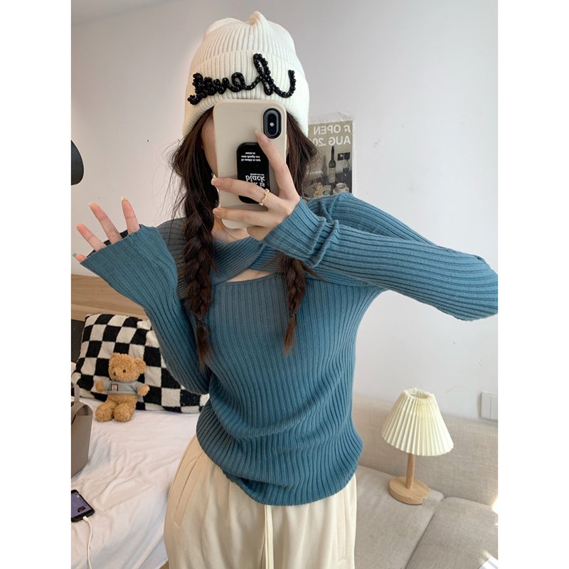 Vapetix Free Size-Free Size Tmall Quality Embroidered Long-Sleeve Knit Top for Autumn New Slimming Stretchy Base Layer Women’s