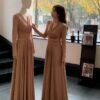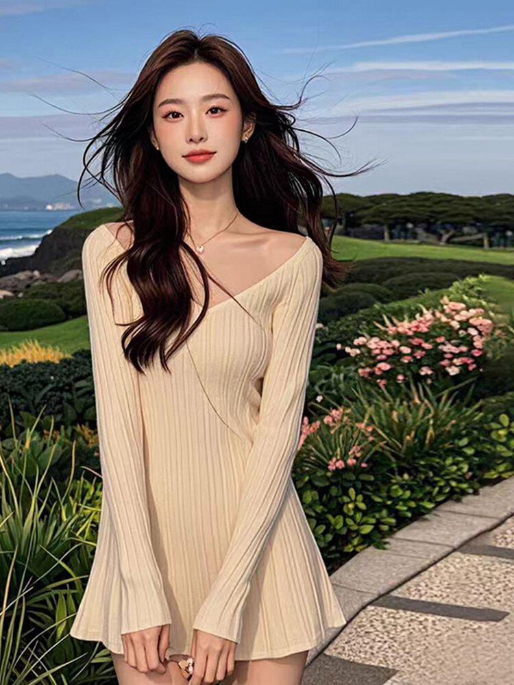Vapetix Free Size-Free Size Tmall Quality Gentle V-Neck Beige Long-Sleeve Dress for Women 2025 New Arrival Base A-Line Skirt
