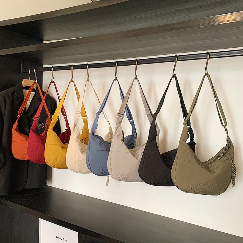 Bag External Pocket Type: Korean Version Small众 Japanese Ins Style Large Capacity Plain Color Nylon Crossbody Bag