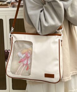 Vapetix Free Size-Free Size Women’s Crossbody Bag Cute Cartoon Transparent Doll Bag College Style Japanese Soft Girl Simple Lar
