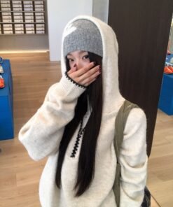 Vapetix Free Size-Free Size Women’s Hooded Sweater for Autumn/Winter Outfit – Casual and Chic Long-Sleeve Top – Unique and Non-