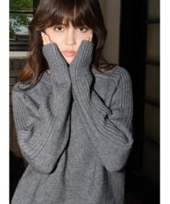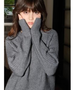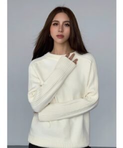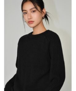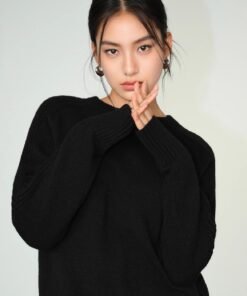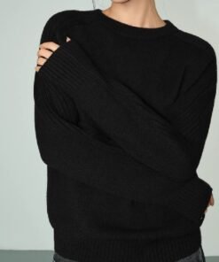 Vapetix Free Size-Free Size Women’s Loose Black Round Neck Sweater, New Autumn/Winter Korean Style Long Sleeve Casual Hoodless