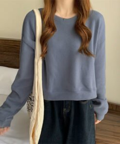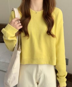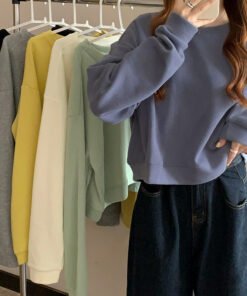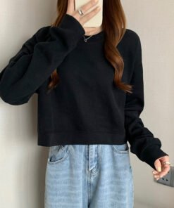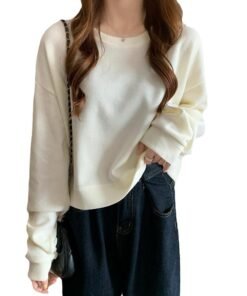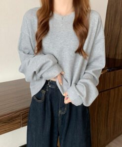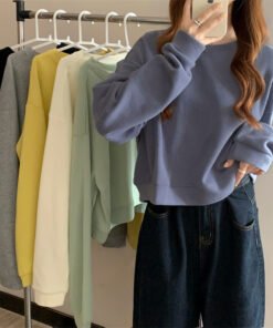Vapetix Free Size-Free Size Women’s Spring and Autumn Season Casual Short Sleeve Round Neck Sweatshirt, Simple Pure Color Loose