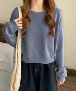 Vapetix Free Size-Free Size Women’s Spring and Autumn Season Casual Short Sleeve Round Neck Sweatshirt, Simple Pure Color Loose