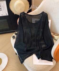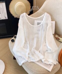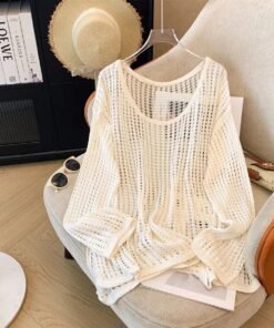 Schreibe die erste Bewertung für „Vapetix Free Size-Free Size Women’s Summer Lazy Style Loose Sun Protection Blouse with Hollow Knit Long Sleeve, Round Neck Desi“ Antworten abbrechen