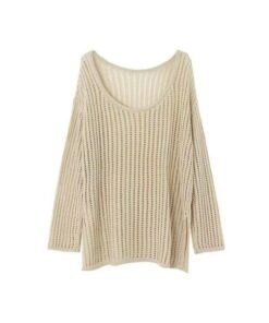 Vapetix Free Size-Free Size Women’s Summer Lazy Style Loose Sun Protection Blouse with Hollow Knit Long Sleeve, Round Neck Desi
