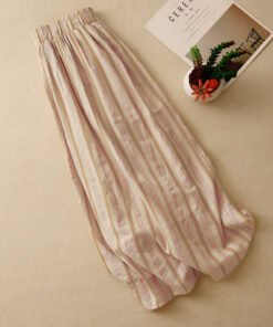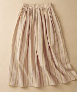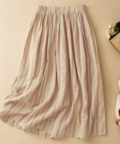 Vapetix L-2XL Women’s Loose Relaxed A-line Semi-calf Maxi Skirt with Elastic Waist, Striped, 100% Cotton, Fashion