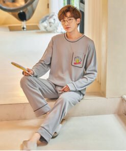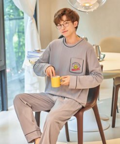 Vapetix L-4XL Autumn New Cotton-Like Men’s Drawstring Crew Neck Pullover Long-Sleeve Long Pants Pajama Set for Me