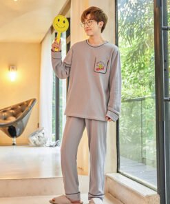 Vapetix L-4XL Autumn New Cotton-Like Men’s Drawstring Crew Neck Pullover Long-Sleeve Long Pants Pajama Set for Me