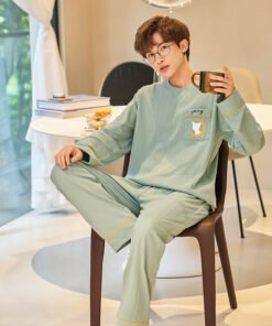 Vapetix L-4XL Autumn New Cotton-Like Men’s Drawstring Crewneck Long-Sleeve Long Pants Pajama Set for Men Homecomi