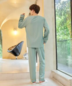 Vapetix L-4XL Autumn New Cotton-Like Men’s Drawstring Crewneck Long-Sleeve Long Pants Pajama Set for Men Homecomi