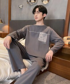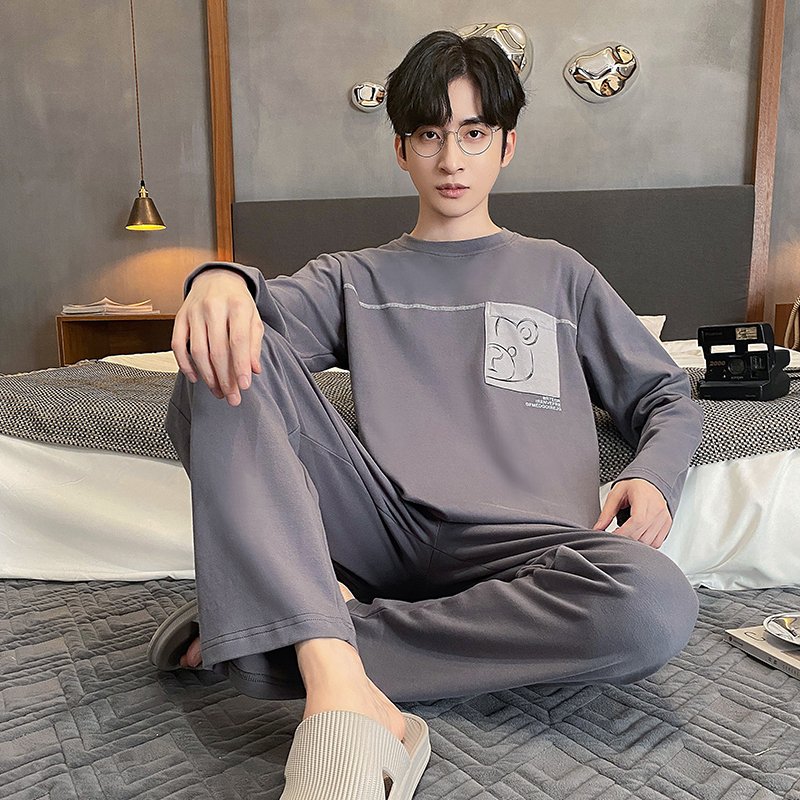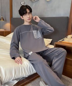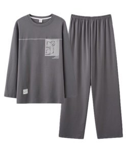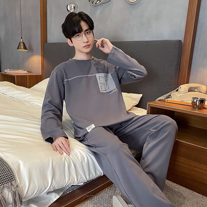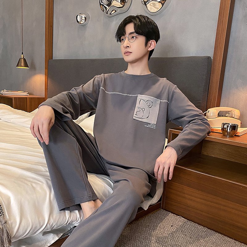 Vapetix L-XXXL Autumn New Cotton-Like Men’s Flat Round Neck Pullover Long-Sleeve Long Pants Pajama Set for Men Hom