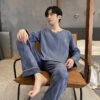 Vapetix L-XXXL New Autumn Cotton-Imitation Men’s Drawstring Crew Neck Pullover Long-Sleeve Long Pants Pajamas Set