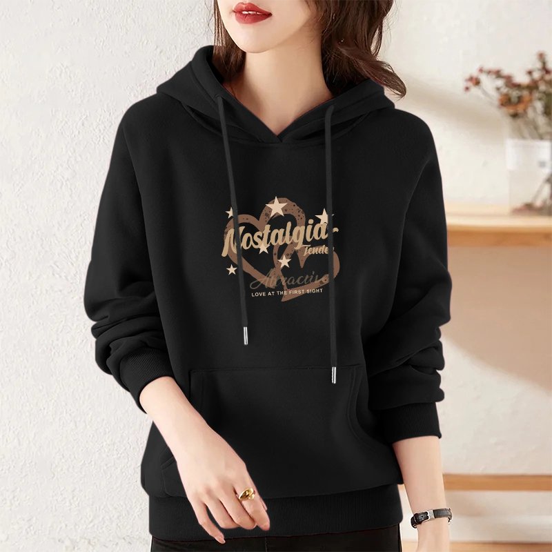 Vapetix M【Recommended 90-105 lbs】-5XL【Suggested 180-200 lbs】 Women’s 2025 New Fall Fashion Han Style Hooded Sweatshirt with Loose Fit and Thicken Padding for a