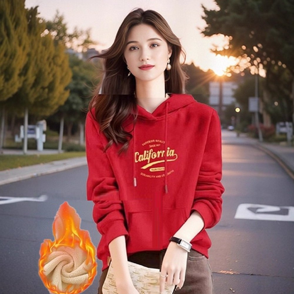 Vapetix M【Recommended 90-105 pounds】-5XL【Suggested 180-200 lbs】 Women’s Red Lucky Year Hooded Sweatshirt with Fleece and Thick Padding, Casual Print Jacket – New A