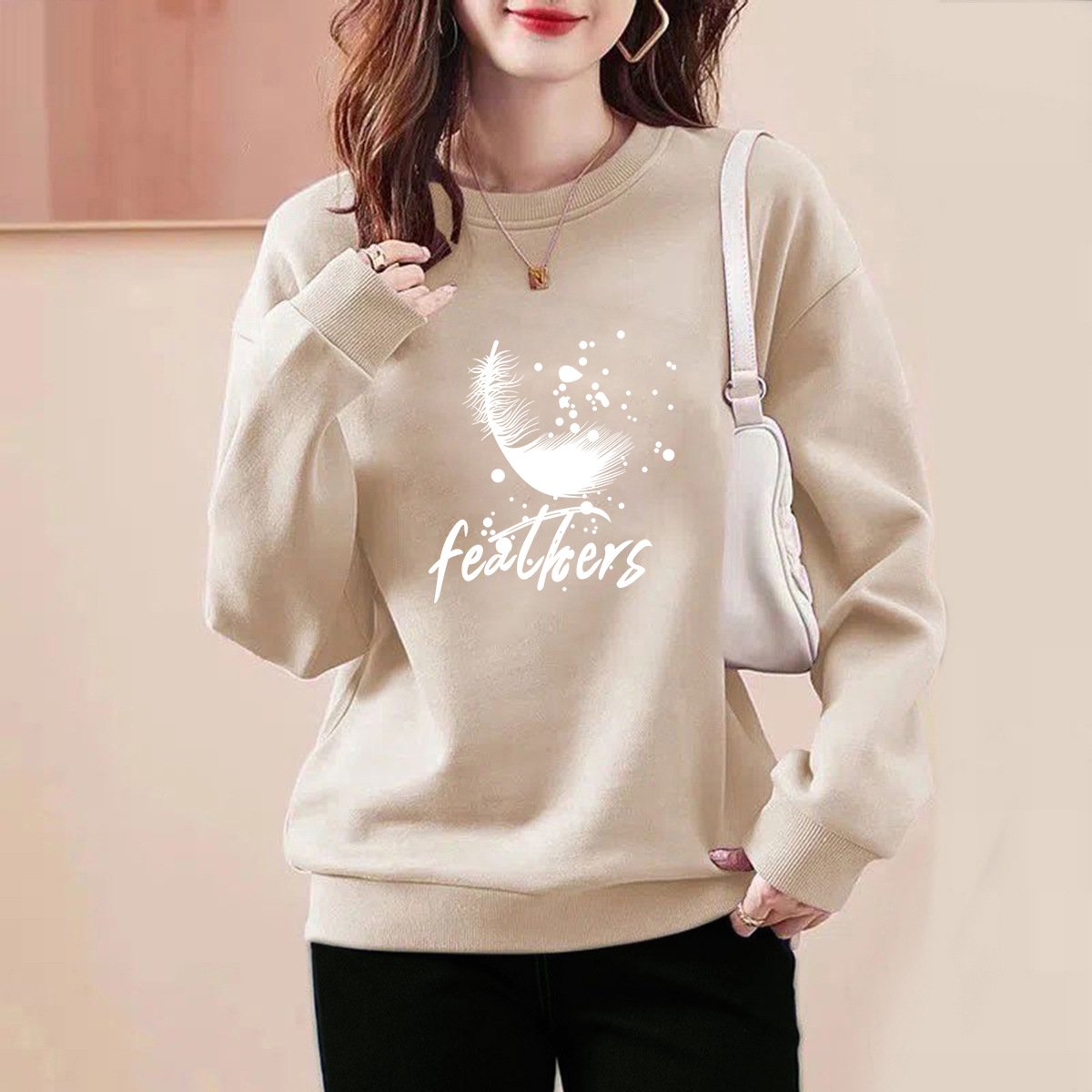 Vapetix M【Recommended 90-105 pounds】-5XL【Suggested for 180-200 lbs】 Women’s Round Neck Sweatshirt 2025 New Spring Autumn Winter Thin Fleece Thick Hoodless Top Warm Sty