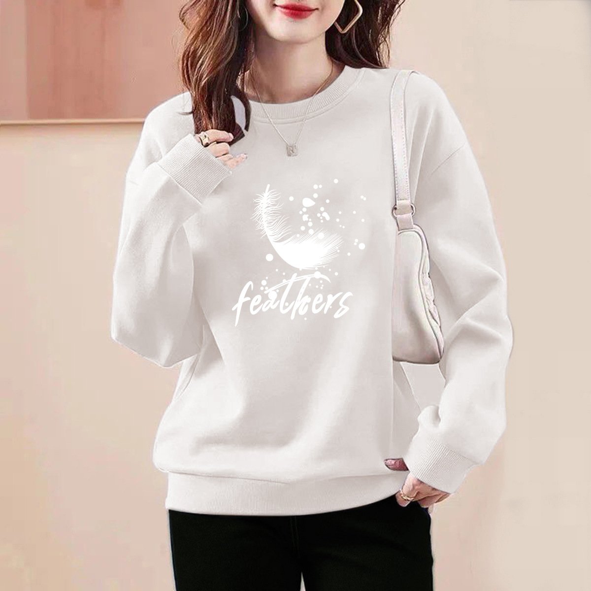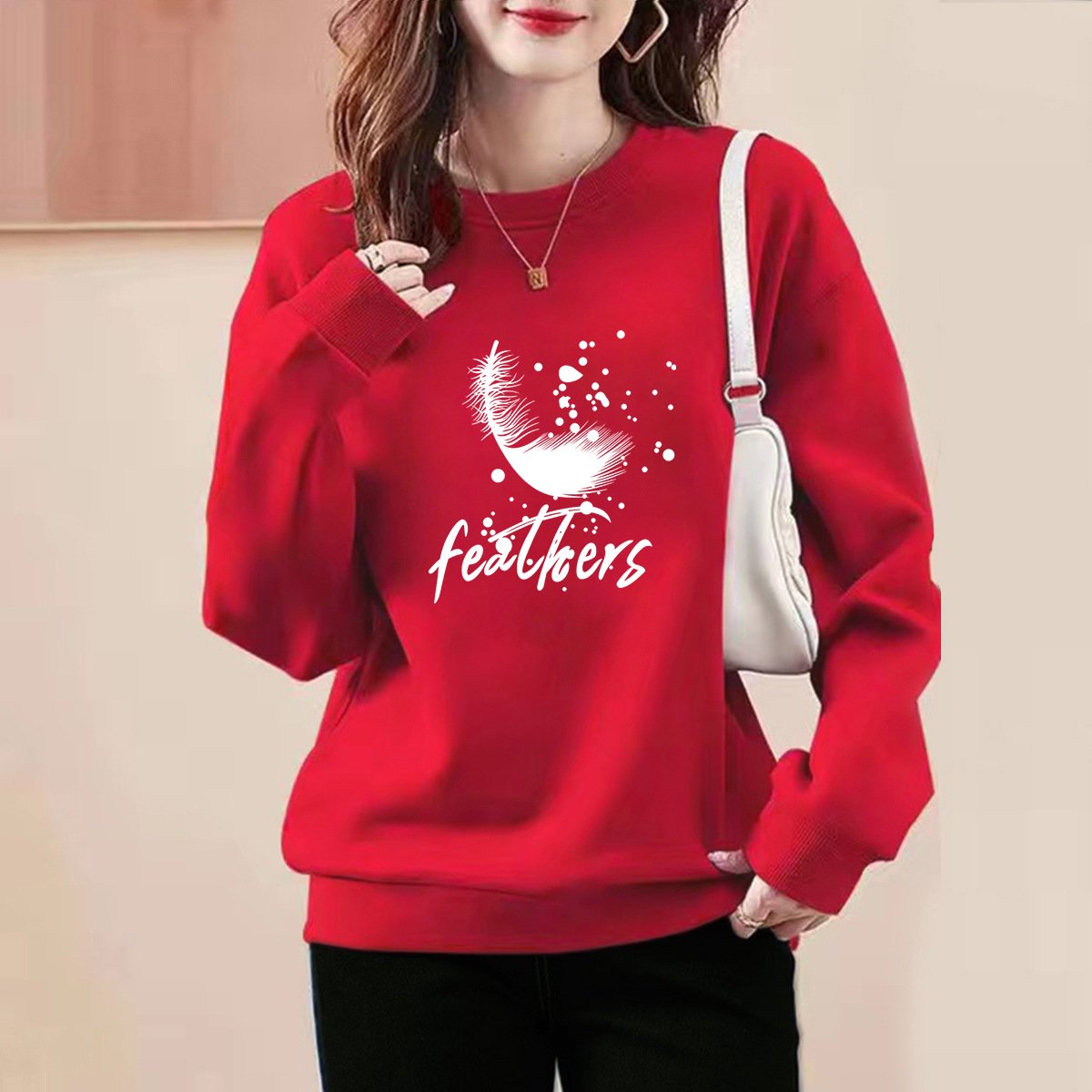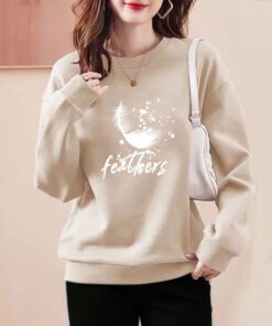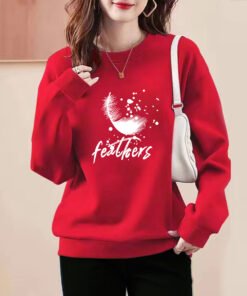 | Color | Cashmere Black Fairy Feather Crewneck Sweatshirt, Cotton-lined Apricot Color Fairy Feather Round Neck Sweatshirt, Cotton-lined Red and White Feather Round Neck Sweatshirt, Cotton-lined white feather round neck sweatshirt, Lined Light Gray Feather-Trimmed Crew Neck Sweatshirt |