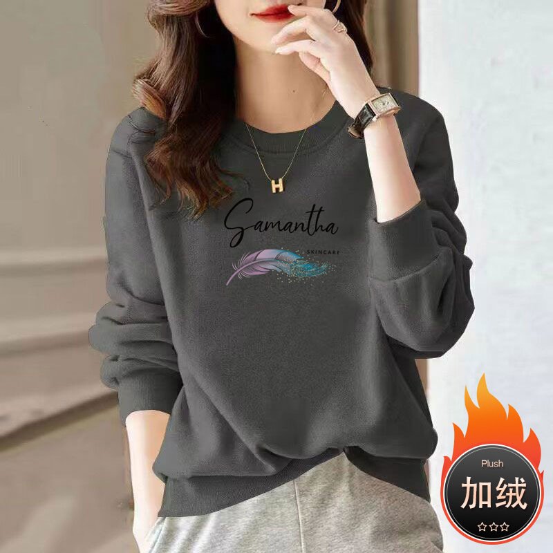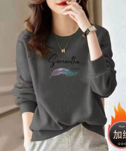 Vapetix M 【Recommended weight: 90-105 pounds】-5XL【Suggested for 180-200 lbs】 Women’s thin version 2025 spring and autumn new long-sleeved women’s regular shoulder round neck tu