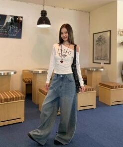 Schreibe die erste Bewertung für „Vapetix M-2XL 【220g 92% cotton 8% spandex】 Off-shoulder American retro chic long-sleeved T-shirt for women, early“ Antworten abbrechen