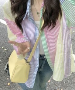 Vapetix M-2XL Macaron color-blocking plaid shirt for women in summer new design niche loose casual age-reducing v