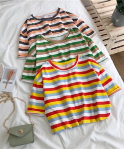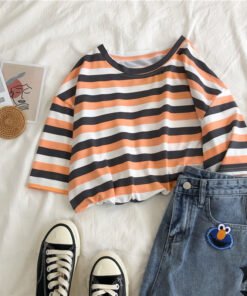 成为第一个“Vapetix M-2XL Summer Korean Version Best Friend Outfit Simple Color Striped Short-Sleeve T-Shirt for Women Japane” 的评价者 取消回复