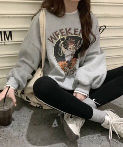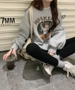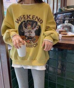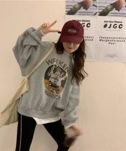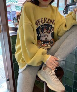 Vapetix M-2XL Women’s Korean BF Style Padded Half Zip Hoodie for Spring and Autumn, Loose Korean Version Round Ne