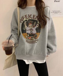 Vapetix M-2XL Women’s Korean BF Style Padded Half Zip Hoodie for Spring and Autumn, Loose Korean Version Round Ne