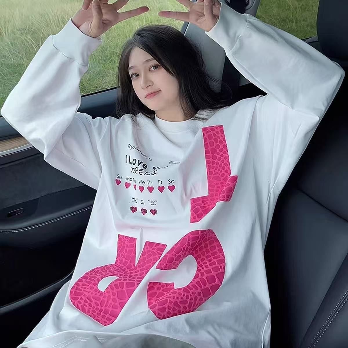Vapetix M-3XL 100% Heavyweight Pure Cotton Autumn/Winter Loose Fit Versatile Crew Neck Long Sleeve Oversize Hip-H