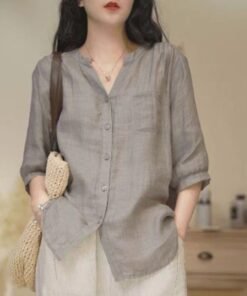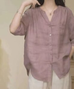 Vapetix M-3XL Korean Version Art Deco Retro Summer Thin Cotton Linen Shirt Women Loose V-Neck Blouse Jacket Casua