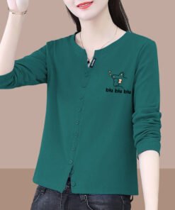 Vapetix M-4XL 100% Pure Cotton Spring and Autumn Long Sleeve Women’s Stylish Casual Fashion Top for Outwear, Vers