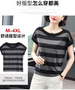 Schreibe die erste Bewertung für „Vapetix M-4XL 2025 Summer Plus Size Women’s Mother’s Wear Fat Mm Slimming Striped Loose Short Sleeve T-Shirt Top“ Antworten abbrechen